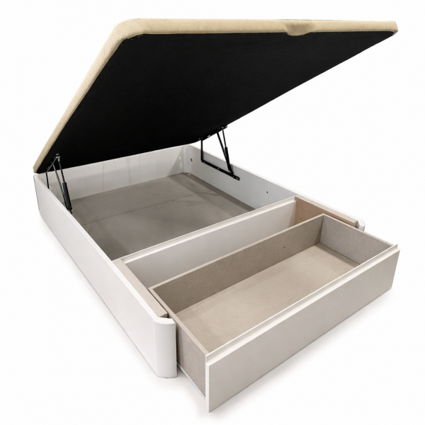 - La apertura del canapé puede ser frontal o lateral, la más habitual es la apertura frontal, ya que además de ser la más cómoda, su único inconveniente es la altura del techo de la habitación. Además, puedes elegir cualquier de las dos opciones con cajones adicionales, lo que te permitirá separar objetos dentro del propio canapé y tener parte de lo almacenado mucho más a mano.