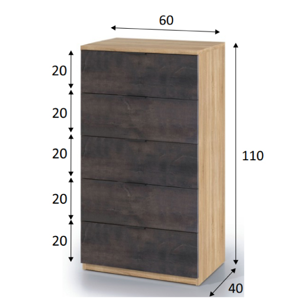 La cómoda de 5 cajones Haya es para tu dormitorio, con el armazón en roble canadian y los cajones en oxido. Un modelo elegante y funcional. ENVÍO GRATIS