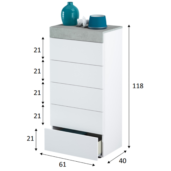 Cómoda 5c blanco - cemento