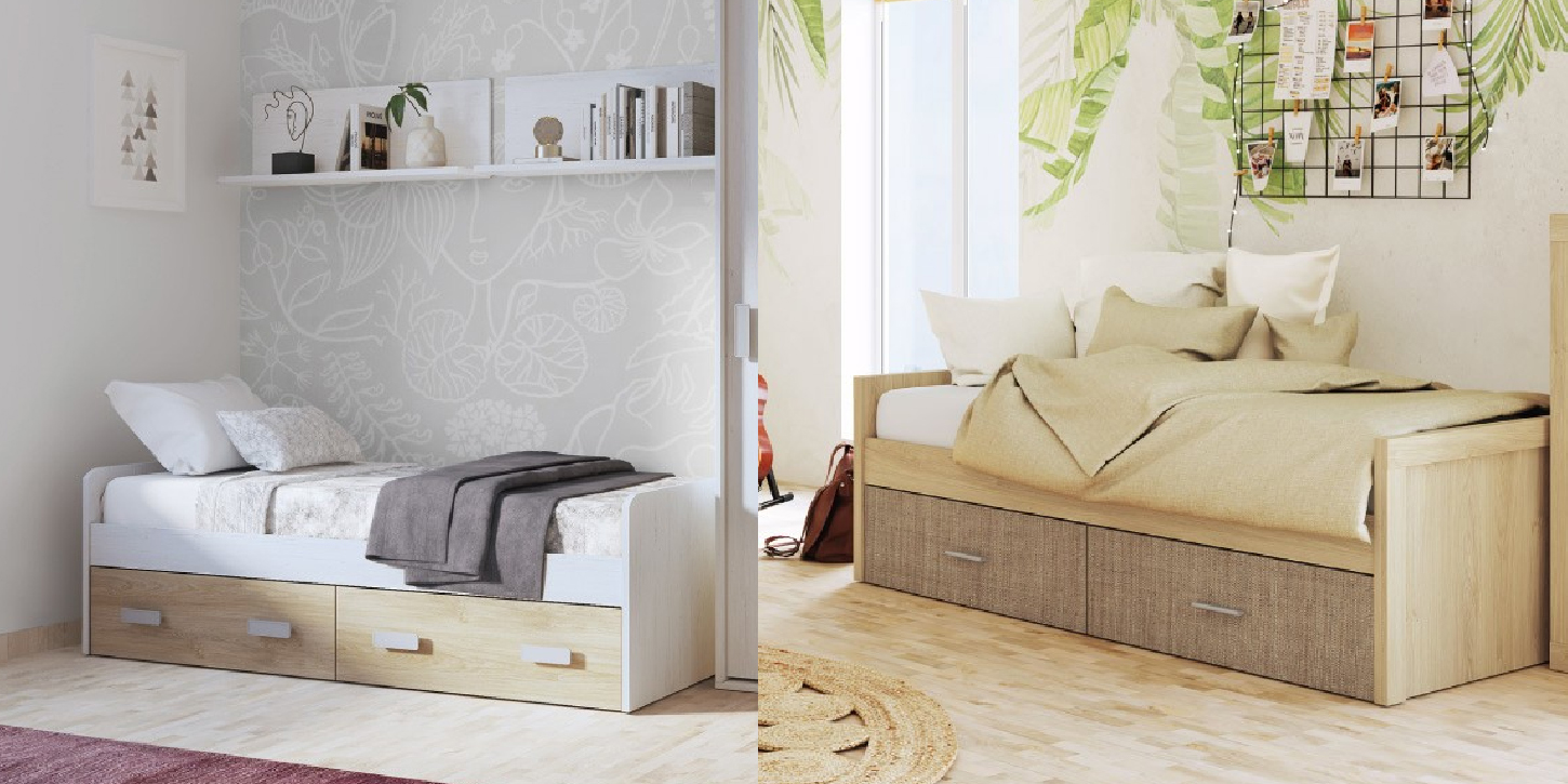 Las camas compactas combinan el diseño de una cama nido con cajones o módulos de almacenamiento adicionales. Son una excelente opción para quienes buscan optimizar el espacio al máximo sin renunciar a la comodidad.