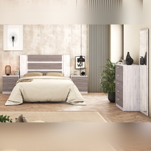 Cabecero bicolor en cambria-blanco, cambria-gráfito o pino andersen pino de 220cm. Un modelo sencillo con un diseño elegante. Formato KIT. Fácil montaje.