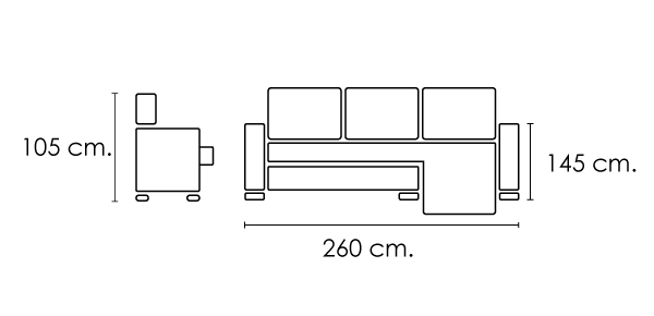 La chaiselongue modelo Hugo de 260cm es un modelo ideal gracias a sus respaldos reclinables y sus asientos deslizantes para que sirva como cama. Además incluye arcón en módulo chaiselongue y brazo. Disponible en tapizado calabria 18 con servicio express