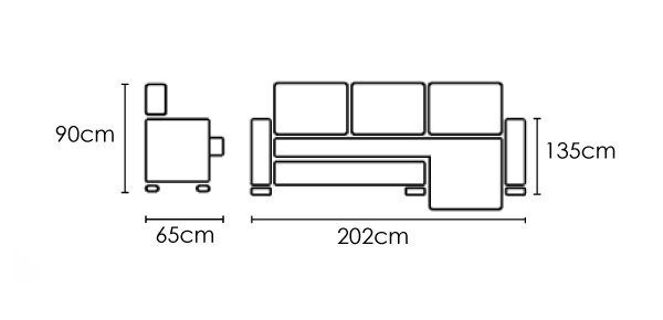 La chaiselongue cama Dax mide 202cm y es una opción práctica y versatil para tener una cama extra. Además tiene capacidad de almacenaje gracias al arcón en el módulo chaiselongue. Disponible en tapizado en tela malmo en color gris.