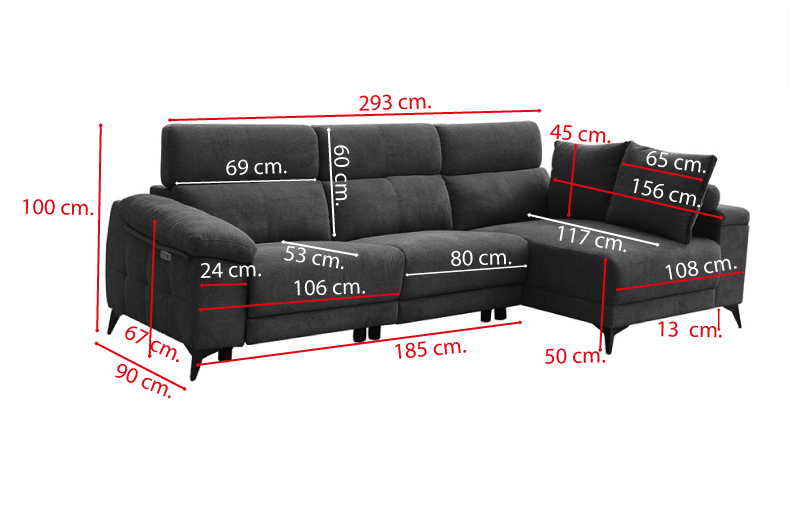 - Mecanismo de relax motorizado con botonera en en los dos asientos + 1 conector USB.