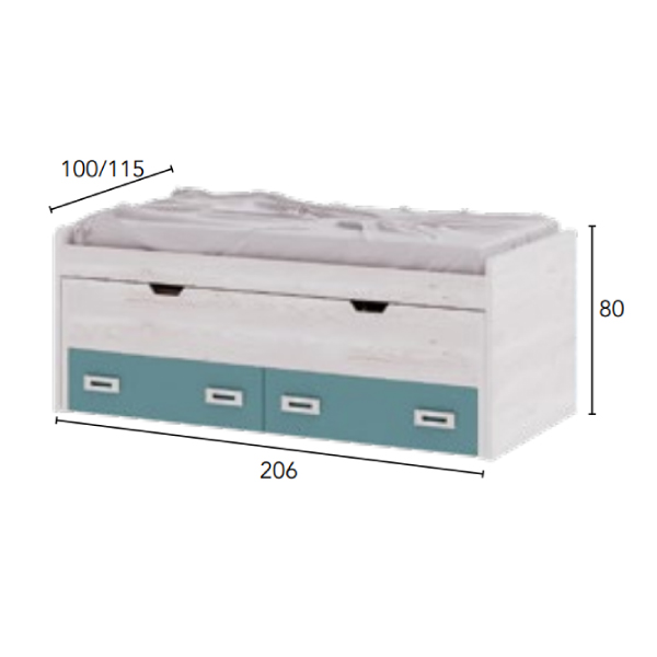 El Dormitorio juvenil Start 04 es una opción ideal por su mezcla de colores y diseño. Está formado por un armario con puertas altas, cama block de 90 con dos cajones, un arcón zapatero y pie ángulo con tapa de escritorio de 240cm