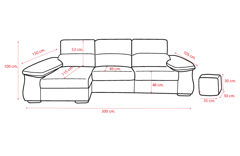 ¡Liquidación en unidades limitadas! La chaiselongue Audi de 300cm es el modelo más completo gracias a sus respaldos, asientos y cojines de brazo desenfundables. Es reclinable, extraíble XL, con arcón abatible, taburetes y brazo arcón. Disponible tela edi en color: marengo, camel o plata