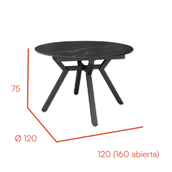La mesa redonda extensible Ross 120 es un modelo original, resistente y práctica.  Un modelo perfecto para cualquier rincón. Disponible en 6 colores, ya que la tapa porcelánica está disponible en 3 colores y las patas metálicas en dos colores. También puede elegir de 100 en la web
