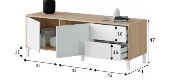 Precioso salón completo que pertenece a la serie Urban Plus, una colección hecha con mimo y cuidado hasta en el último detalle. Se compone de mesa de centro, bajo tv y aparador. Combina los colores roble canadian y blanco. Puedes encontrar el mismo salón pero de color roble-óxido en nuestra web. Tipo KIT.