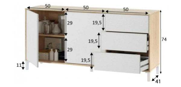 El mueble incluye todo lo necesario para su instalación: manual con instrucciones claras y sencillas y las piezas necesarias para realizar el montaje.