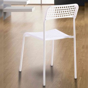 Juego de 6 sillas modelo Top. Fabricadas con polipropileno y patas metálicas. Disponible en color blanco (color negro agotado). También podrás encontrar el juego de 10 unidades en nuestra web, que también se dispone en color negro.