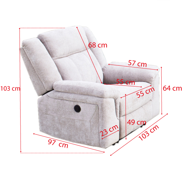 El sofá eléctrico de una plaza modelo Troya combina diseño, confort y funcionalidad a un precio competitivo. Gracias a su sistema reclinable eléctrico y asiento con muelles ensacados, proporciona una experiencia de descanso superior. Su estructura robusta garantiza una gran durabilidad. Disponible en elegantes colores beig y gris, es perfecto para salones modernos o clásicos. Además, puedes completar tu espacio con las versiones de 2 y 3 plazas disponibles en nuestra web.